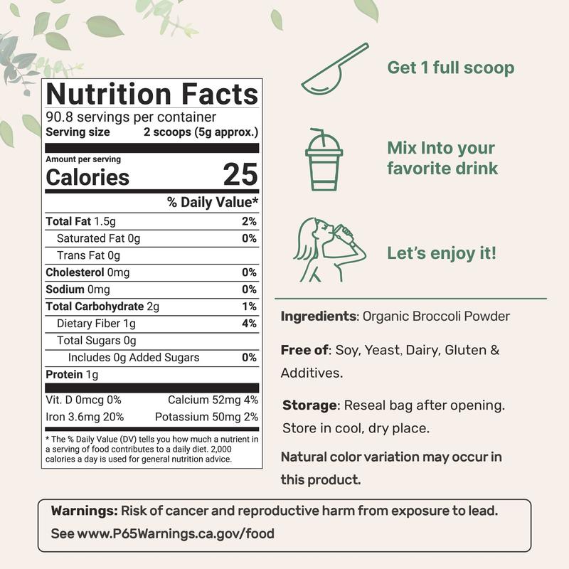 ·USDA organic broccoli sprout powder, 1 pound (16 ounce), freeze dried, naturally contains DIM (diindolylmethane), vegan friendly.