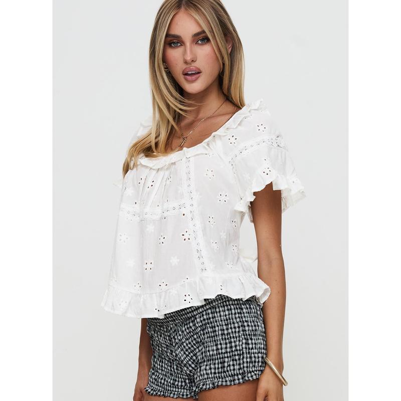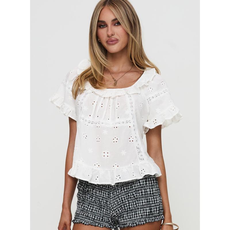 Teigen Broiderie Top White