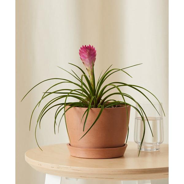 A colorful and low-maintenance air plant, the Bromeliad Summer is a striking houseplant that adds warmth to your home. With a bright and cheery magenta flower, this bromeliad is pet-friendly and makes for a great gift for any plant lover or beginner plant parent.