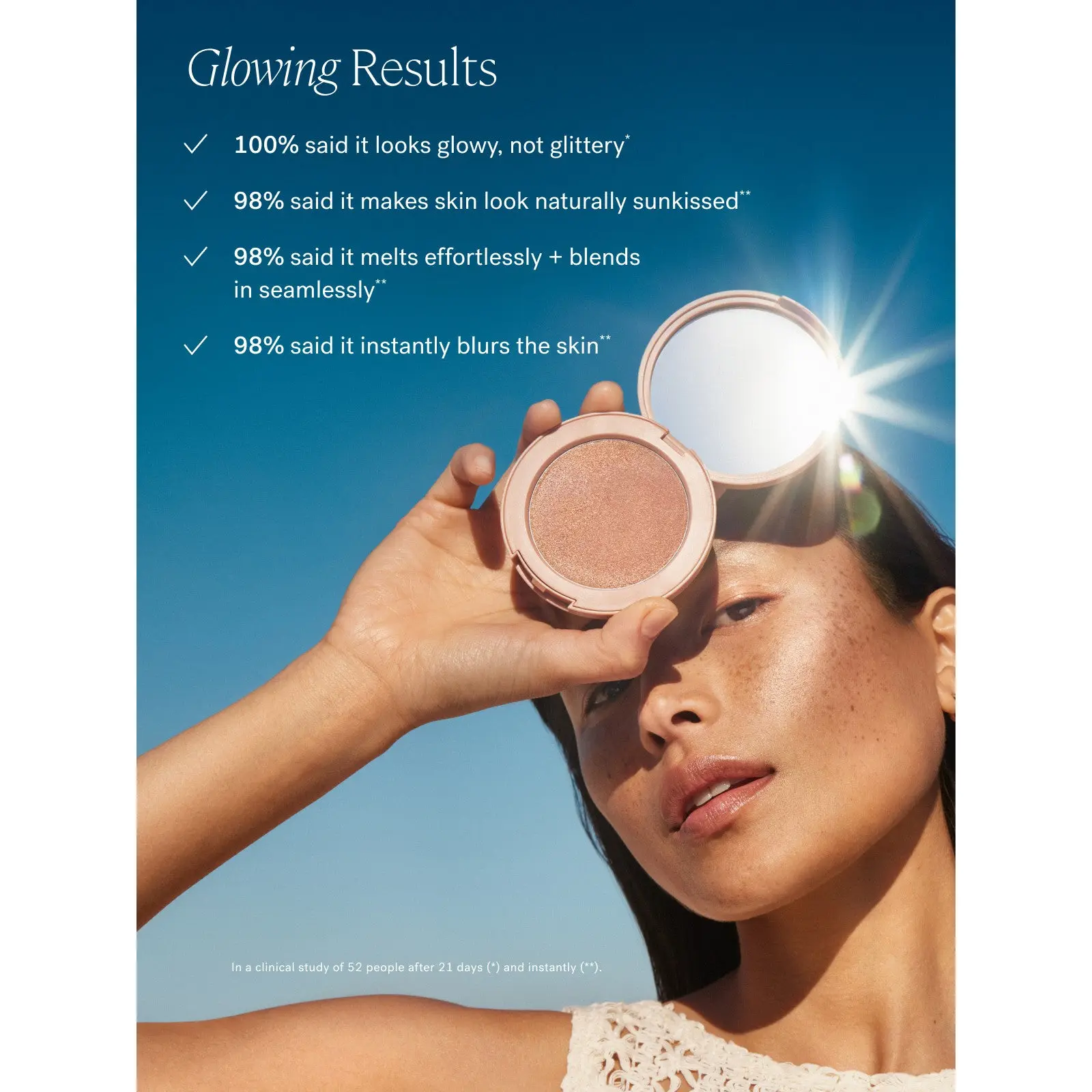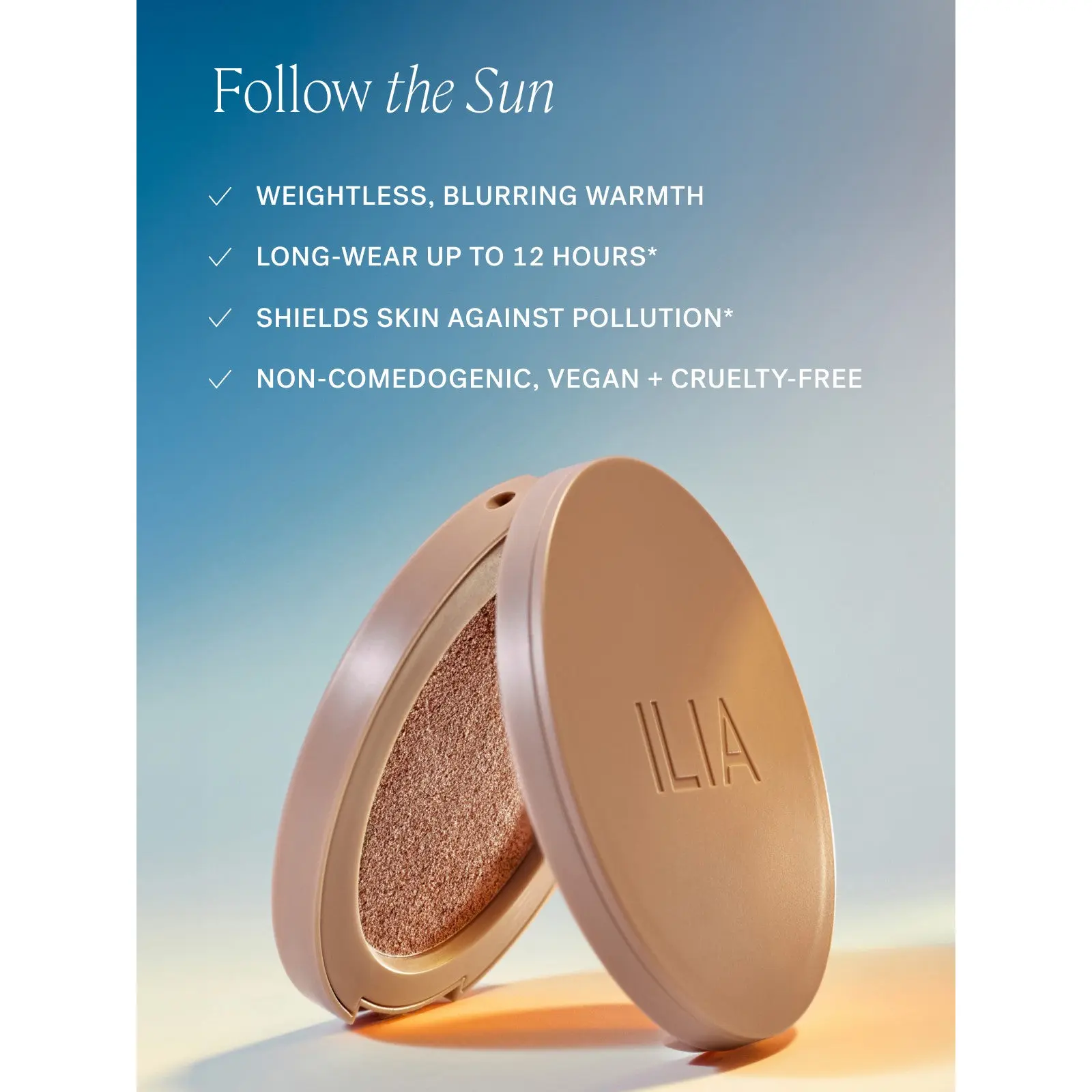 Follow the sun. This blurring, non-comedogenic bronzer shifts from a silky cream to a weightless powder, blending seamlessly for sunkissed warmth and dimension that lasts up to 12 hours. Boosted with potent antioxidants, it’s clinically proven to help shield skin against pollution. Choose from 4 shades that mimic a golden-hour glow.