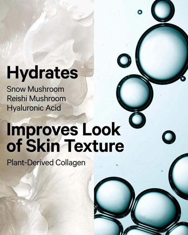 -Snow mushroom, reishi mushroom, and hyaluronic acid hydrate to give you smoother-looking, plumper-looking skin.