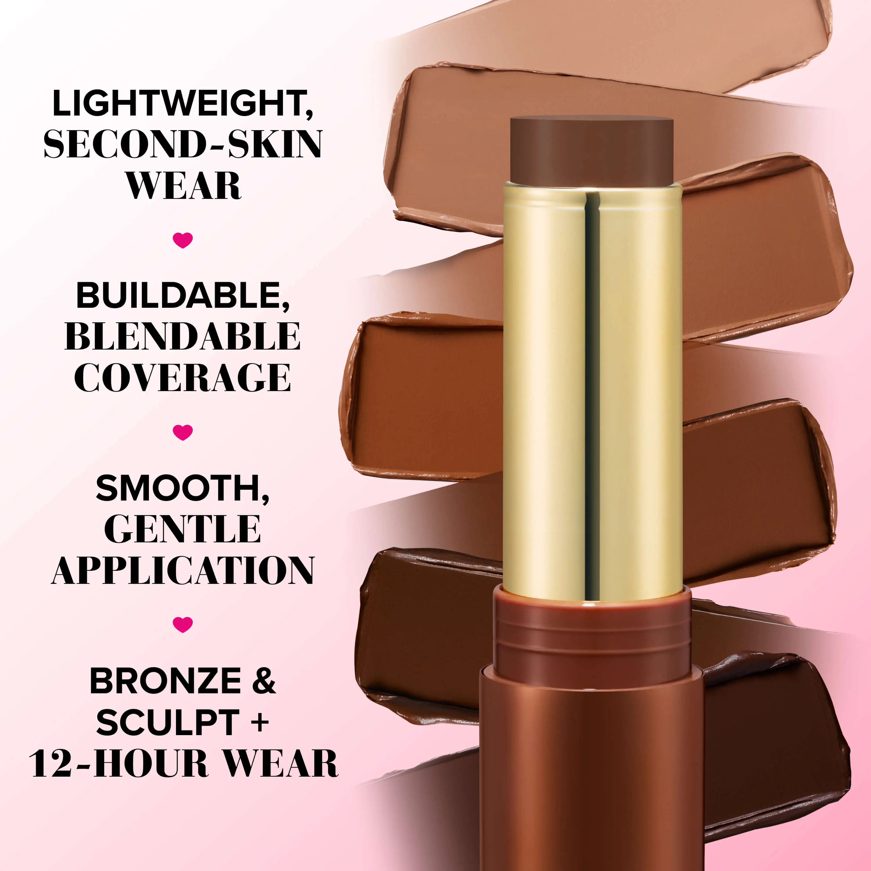 Do it like the pros! Our easy cream bronzer & sculpting stick gives you natural-looking second-skin warmth & dimension that smells as good as it looks! Use a dense brush or fingers to sweep along outer edges of face, forehead, cheekbones & nose, then effortlessly blend for a magic sun-kissed look.