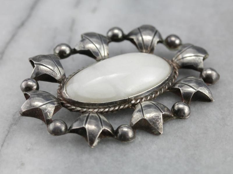 5. White Marble Mexican Silver Brooch