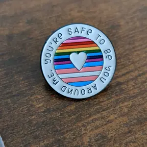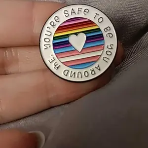 Love the pin. Be a safe space for those who need it. Show your Pride. Really good size pin, not too small at all and highly recommend getting one to show your support π³οΈβππ³οΈβπ. Has a rubber backing to hold the pin in place on your clothes.