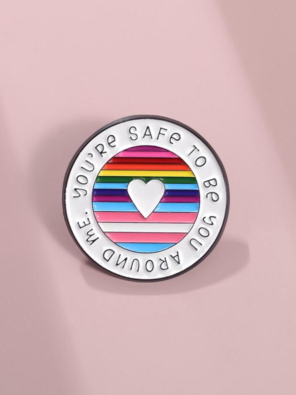Love Heart & Letter & Colorful Stripe Design Brooch, Clip, Durable Metal Pins, Cute Round Shaped Clothes Brooch, Fashion Accessory for Women & Men, Men Accessories Jewelry