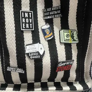 Check out this cute little pin šŸ˜† I’m buying so many more to cover this bag that I carry to work. Link is here if you want this one! They’re sooooo inexpensive  #fyp #donttouchme #pin #brooch #tiktokmademebuyit #tiktokshop