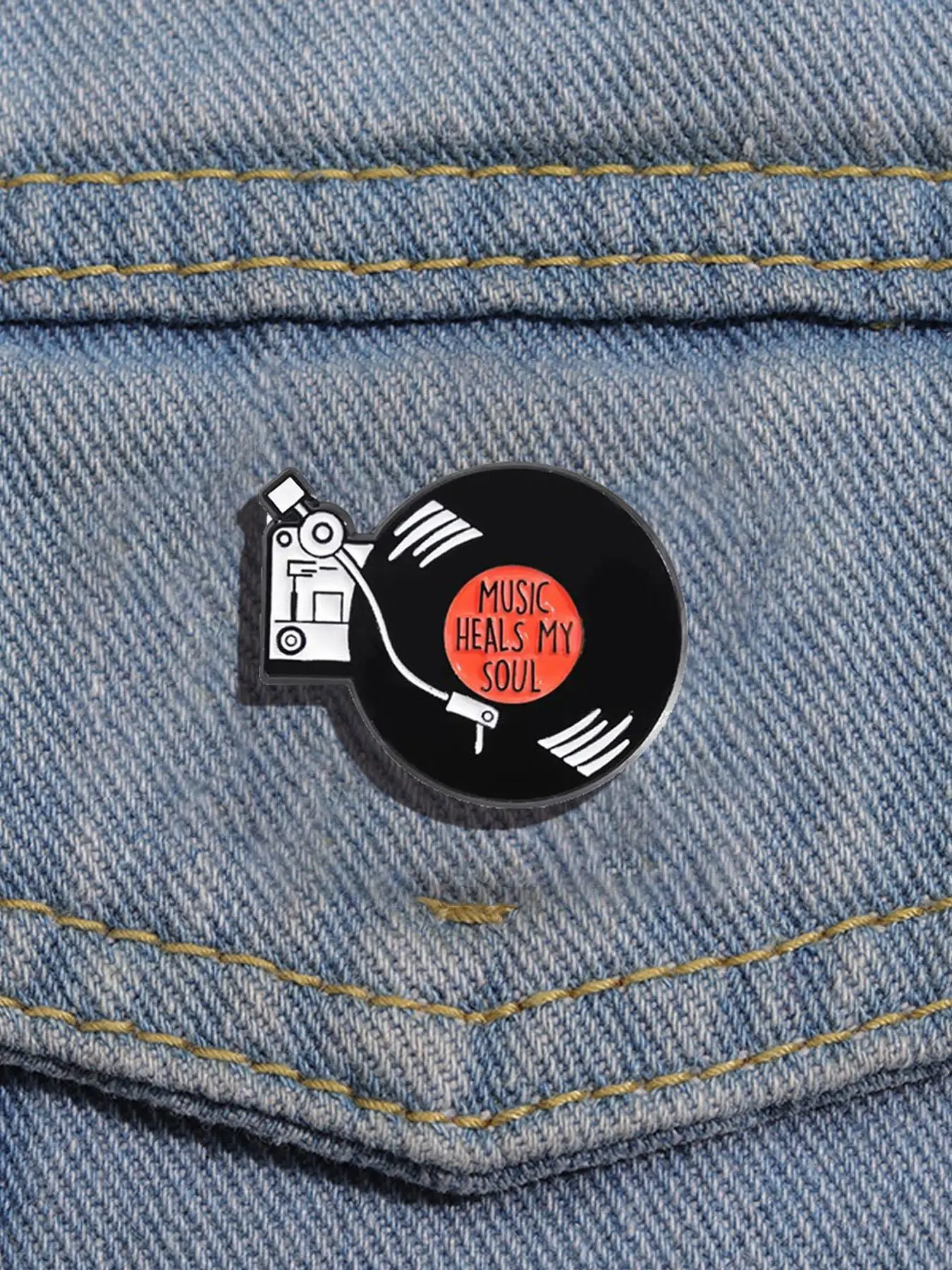 【Unique Theme】: Featuring a retro vinyl record player design, this brooch adds a touch of healing music soul to your outfit.