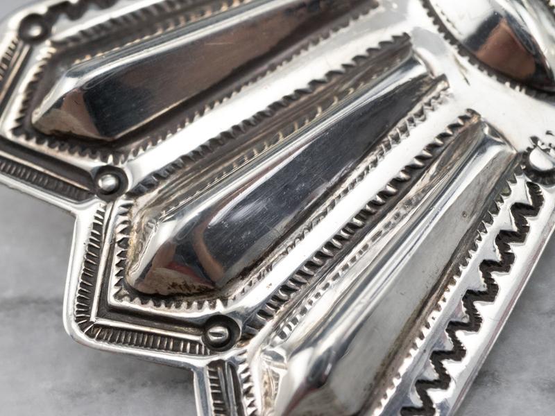 Although this piece is not marked we believe it originates from the Zuni tribe out of the Southwest United States! A stunning unisex piece with a perfect patina, ready to wear or gift!