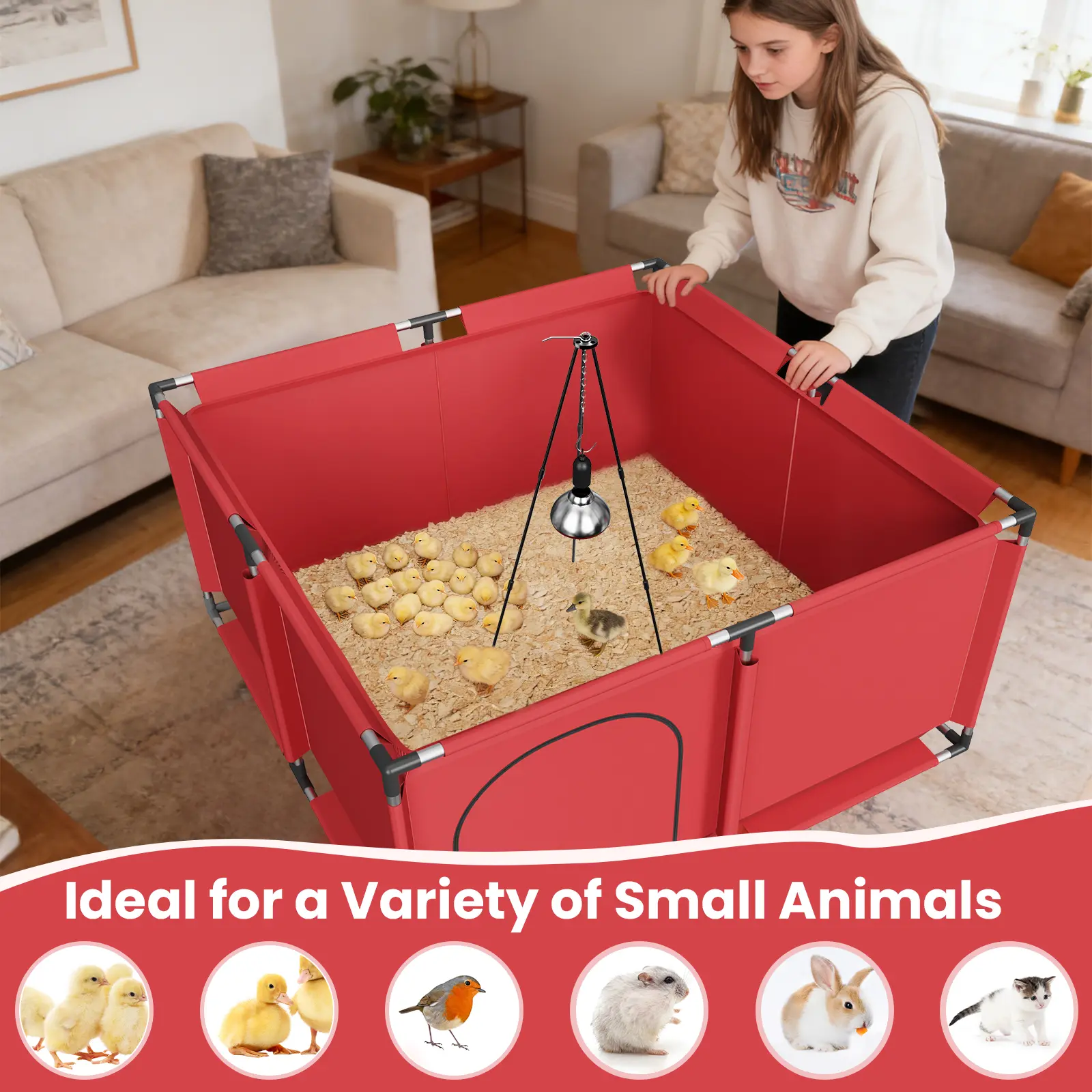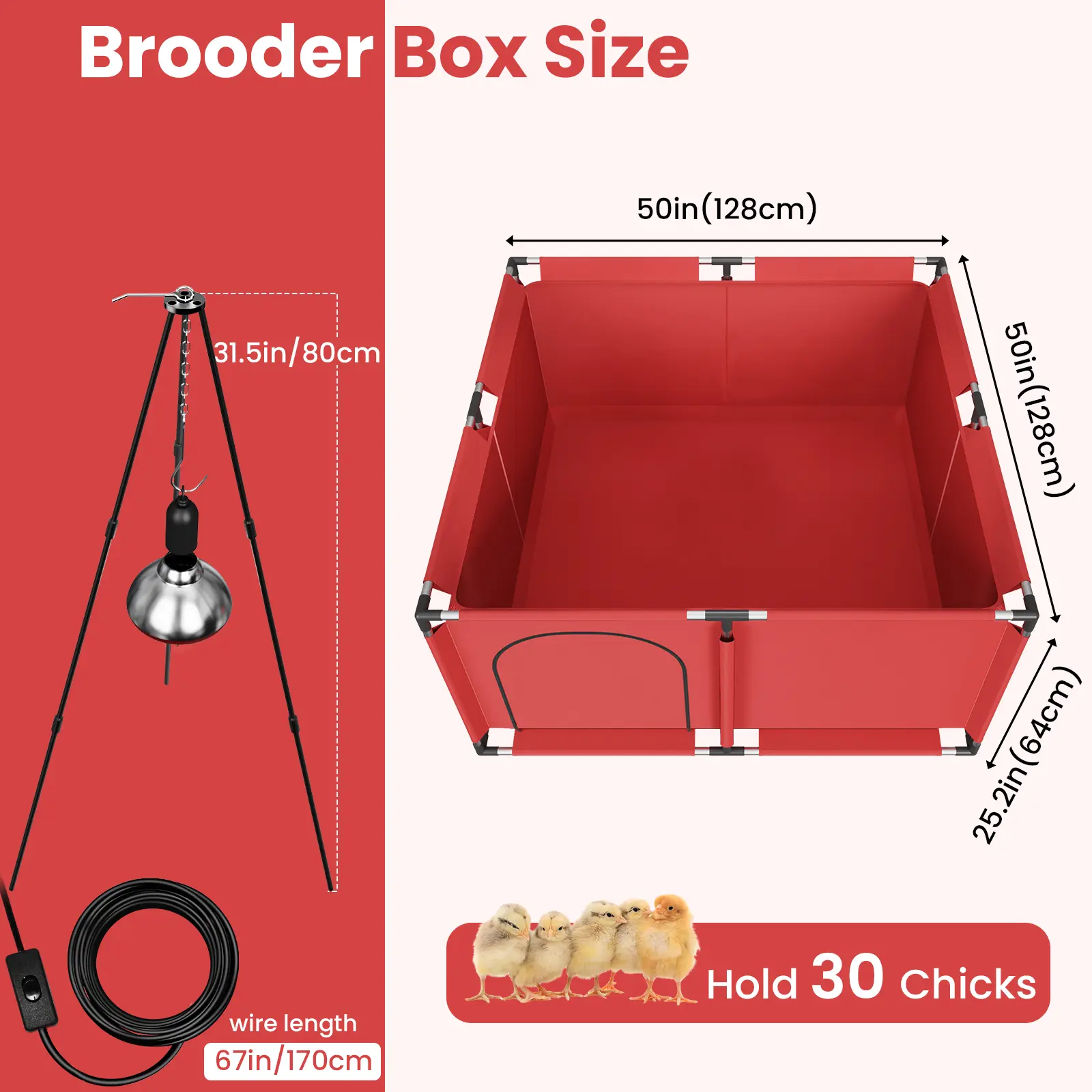 ·【Spacious & Comfortable】: With dimensions 50x50x25 inches, the brooder can accommodate up to 30 chicks, providing sufficient activity space to avoid crowding stress. Suitable for chicks, ducks and other young poultry, meeting diverse breeding needs