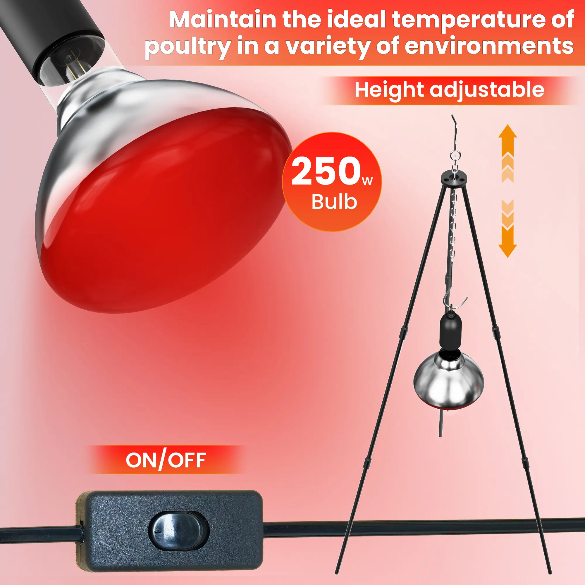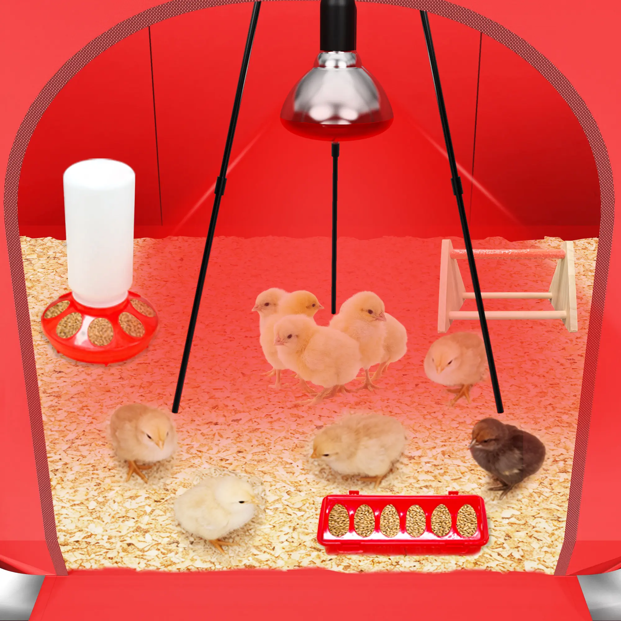 ·【Warmth & Protection】: Equipped with 250W heating lamp, the height-adjustable lamp stand allows flexible heating distance adjustment based on growth stage and ambient temperature, provide safe warmth environment for chicks