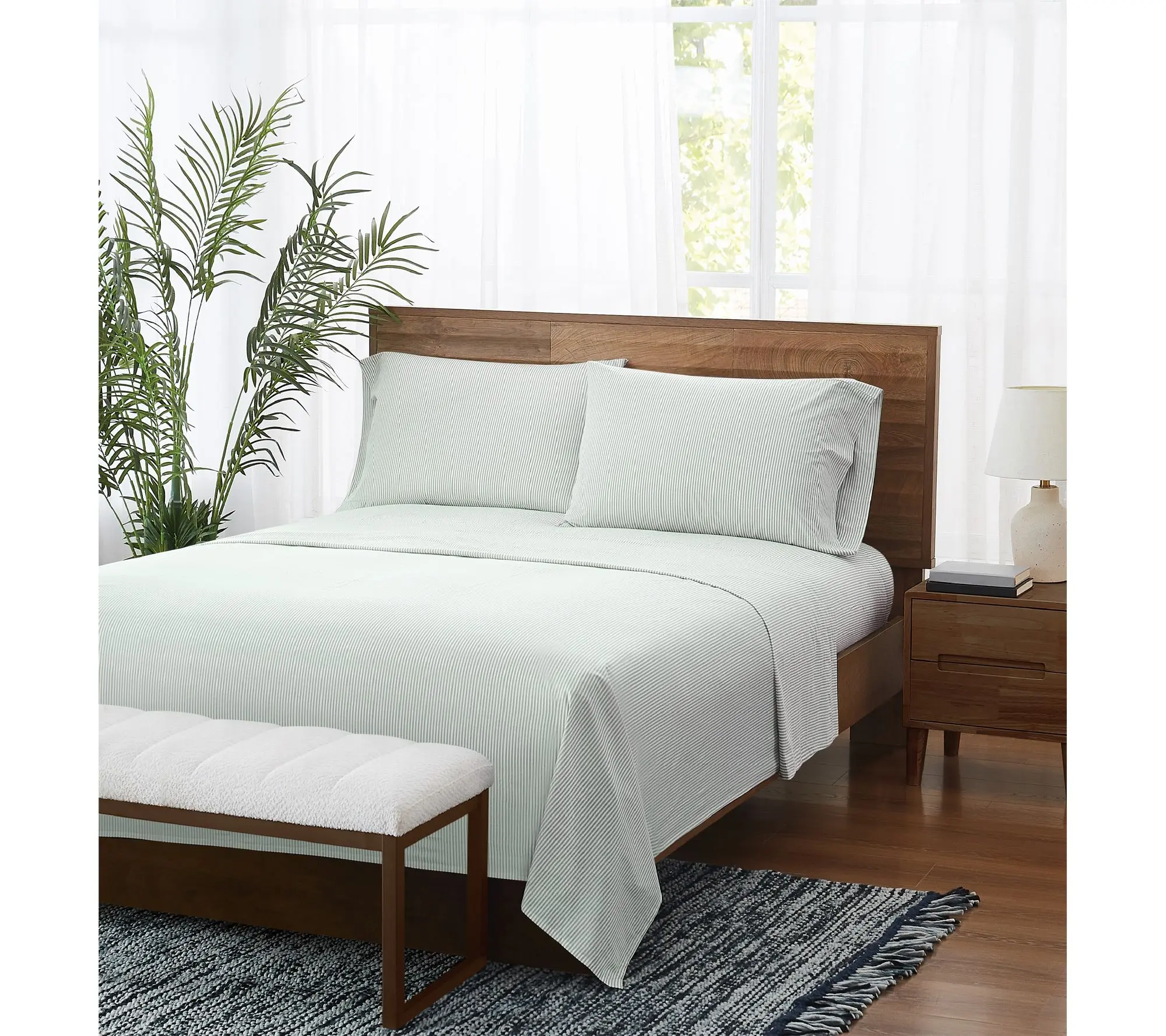 5. Brooklyn Loom Pinstripe Queen 4 Piece Sheet Set