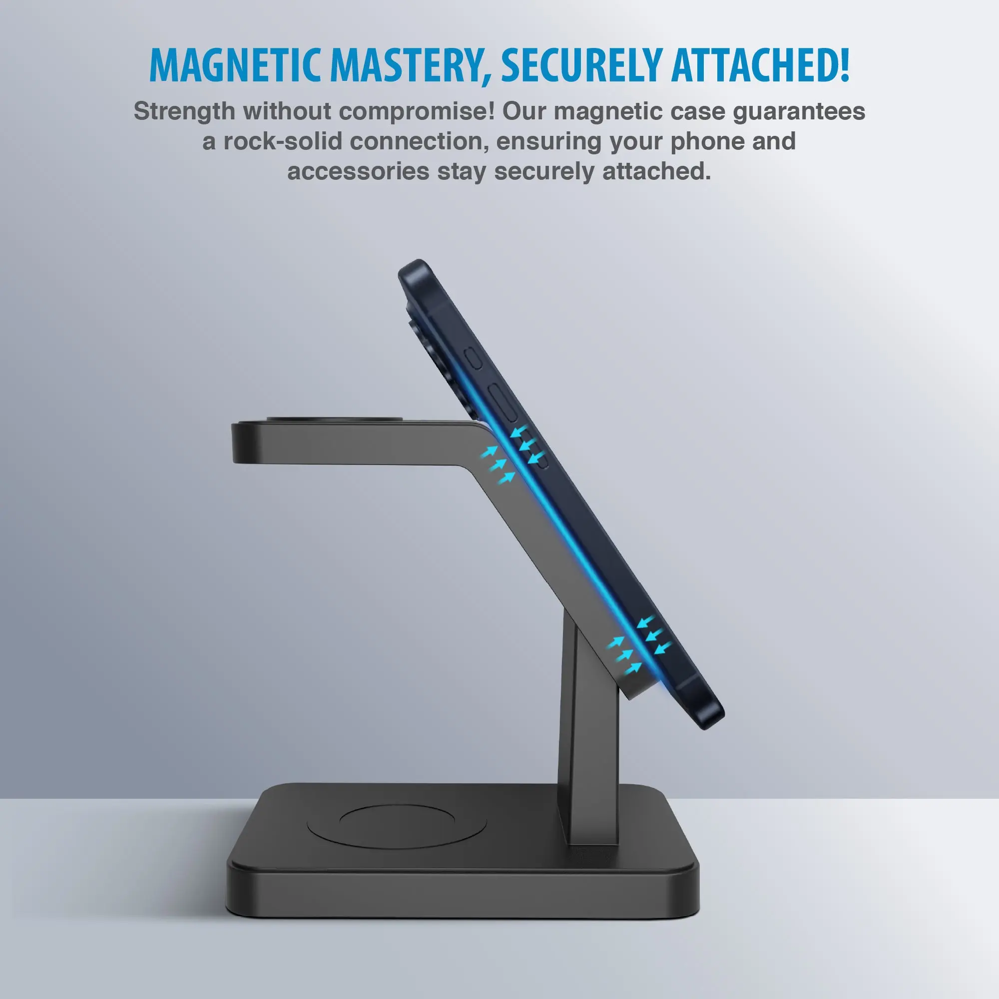 ·· Comfortable Use :- The dual charging coil enables charging in both portrait and landscape modes. This feature offers a convenient viewing angle, allowing you to watch videos, Face Time, and send messages while your devices charge. Anti-slip silicone pads protect your devices from sliding off.