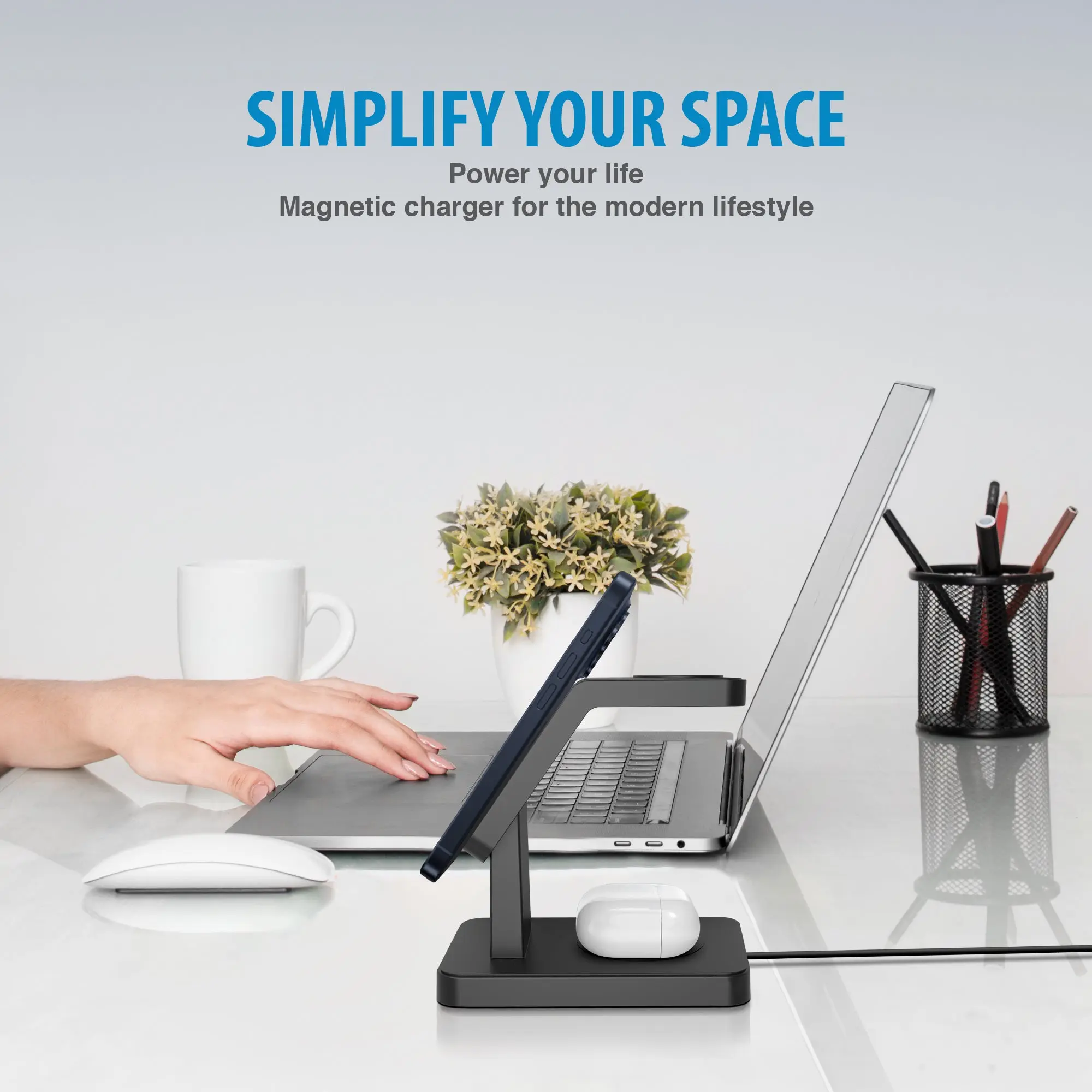 ·· Package Includes :- The package includes a 3 in 1 wireless charging station, 1 USB-C cable, and 1 user guide. This iPhone wireless charger station is available in two color options: White & Black.