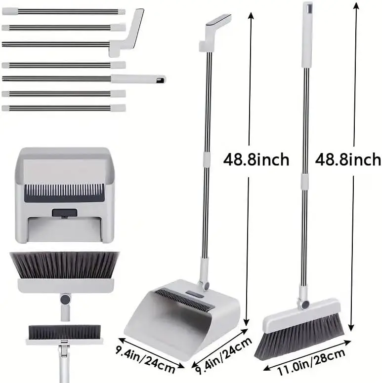 ·Adjustable Long Handle: The package contains a broom head, a broom brush, a dustpan head and 7 poles. The poles can be easily combined, from 14.2 inch-48.8 inch, suitable for most heights. Stay away from bending right now.
