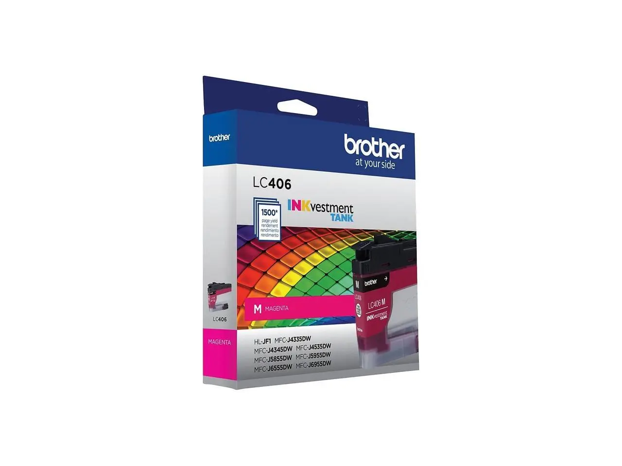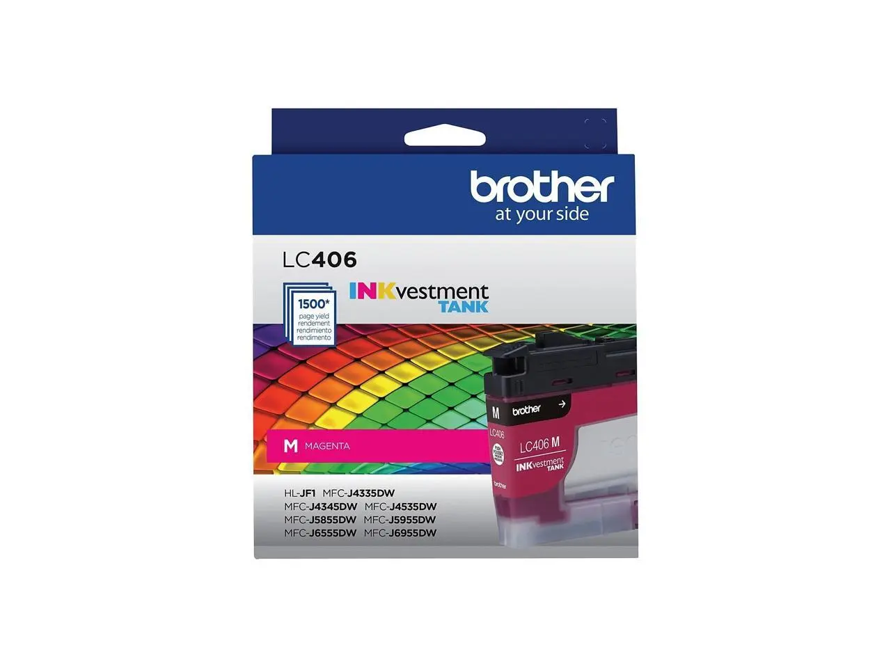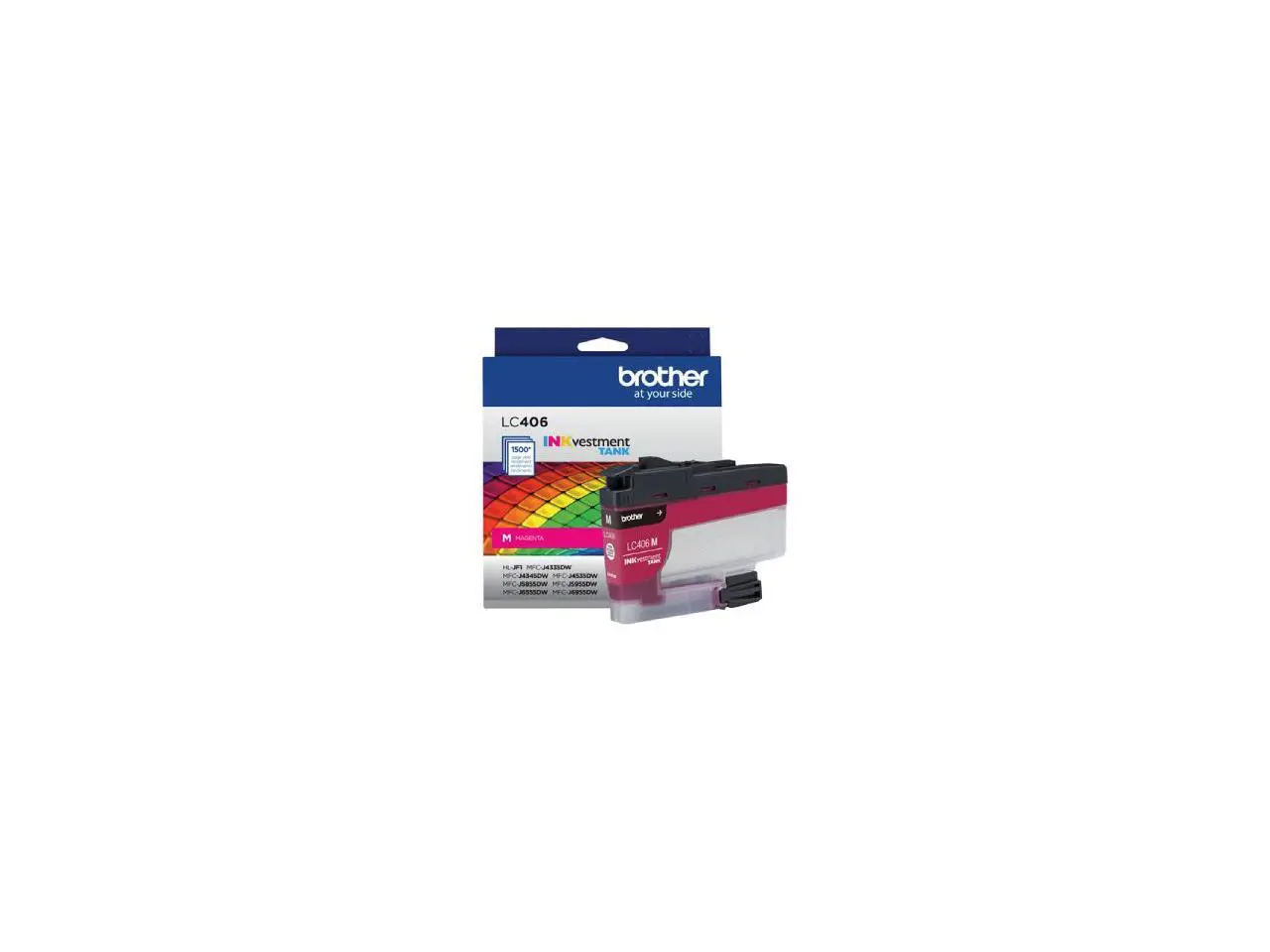 ·INKvestment Tank Ink Cartridge produces high-quality, sharp prints with vivid colors that withstand the test of time. It intelligently engineered to work seamlessly with your Brother INKvestment Tank inkjet printer to deliver outstanding results and reliable performance in your Brother Color Inkjet All-in-One Printers MFC-J4335DW, MFC-J4345DW XL, MFC-J4535DW, MFC-J5855DW, MFC-J5955DW, MFC-J6555DW and MFC-J6955DW. Front-loading ink cartridge continually supplies ink to the internal tank. To refill, simply take out the empty cartridge, plug in a replacement and get back to printing with no waiting and no mess. Enjoy superior inkjet print quality and reliable performance for up to 1,500 pages using this standard-yield cartridge. More from the Manufacturer