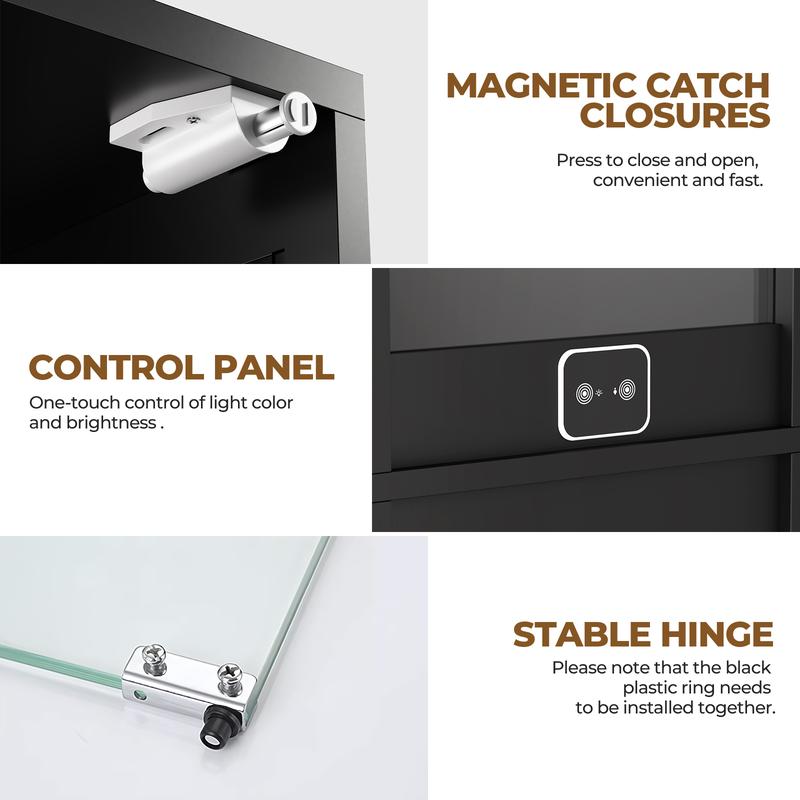 【3 Color LED Lights】Display cabinet features 3 color LED lights that add a modern touch to your living space and allow for clear display even in the dark. 3 colors lights: white light, warm light, blue light, brightness adjustable.