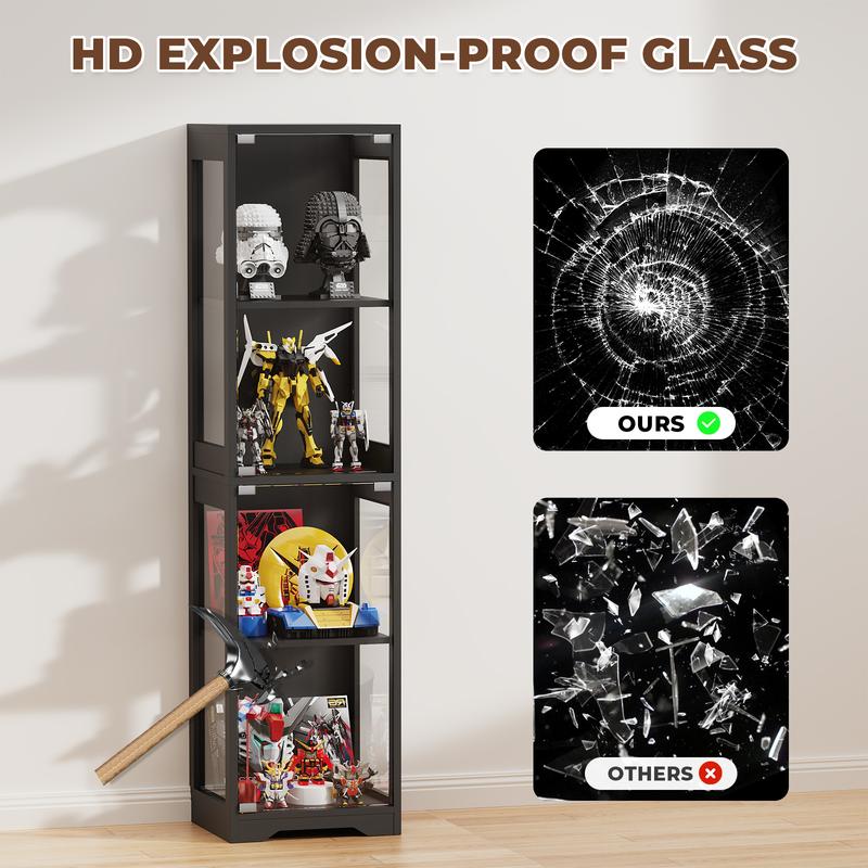 【Pop-Up Glass Doors】The pop-up glass door of this curio cabinet creates an unobstructed view of your collection, while the no-handle design adds sleek sophistication. High-definition glass with no distortion, no discoloration, fully displays the beauty of the collection.