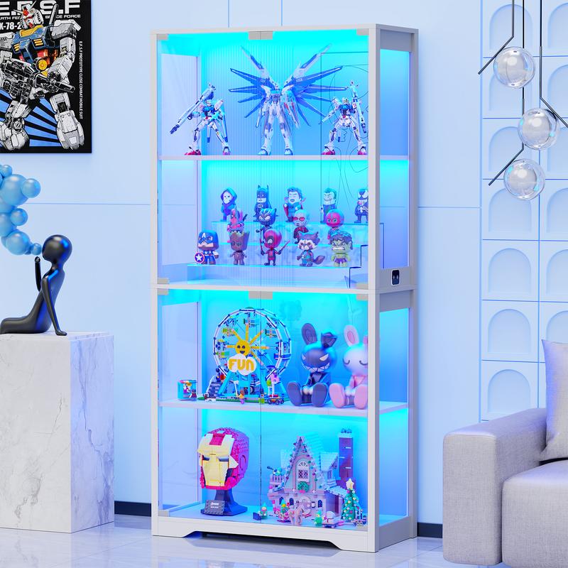 Each layer is equipped with LED lights (white light, warm light, blue light) brightness adjustable, which can clearly display your collection, figures, books, trophies, etc. even in the dark. Not only for storage, but also as decoration in your living space.