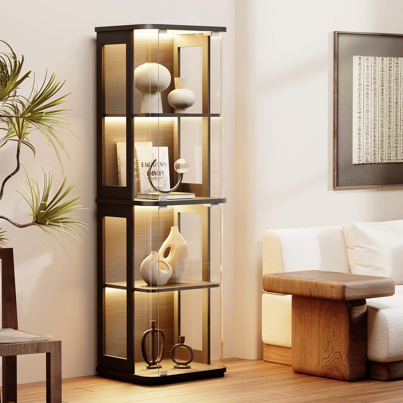 ·【Humanized Design】This display cabinet is equipped with an intelligent human body sensing system. When you approach or leave, the light automatically turns on, illuminating your collection and attracting everyone's attention. After 2-3 minutes of leaving, the light automatically turns off. It is very easy to use.
