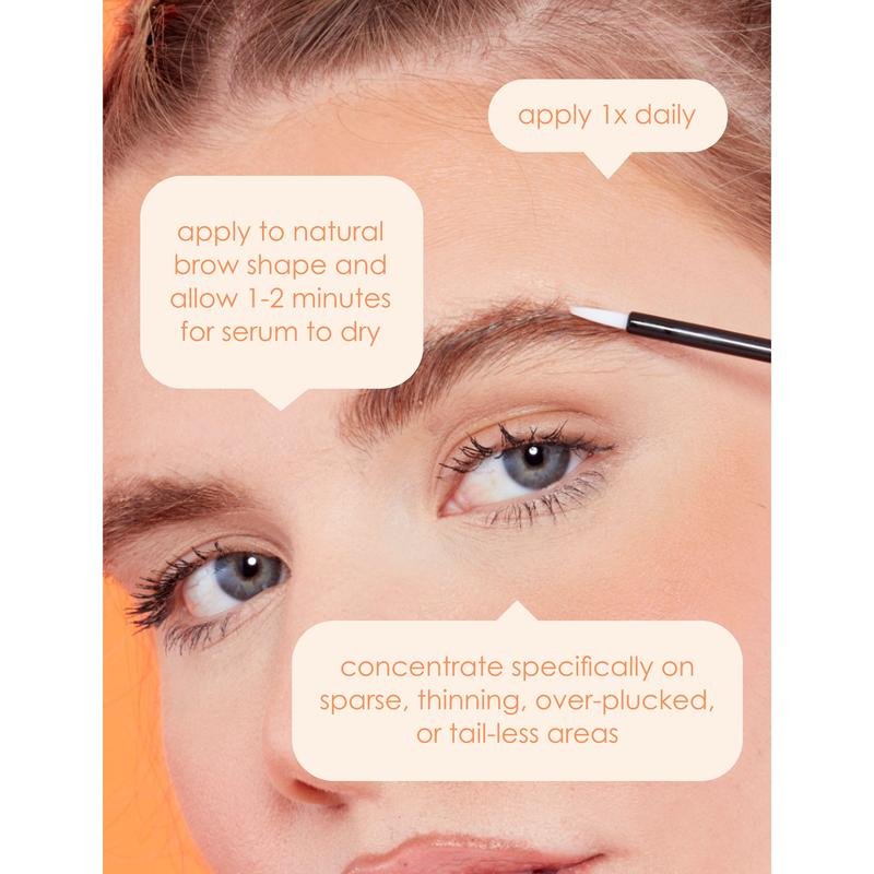 As with all cosmetic products used in the area of the eye (or close proximity to the eye), it is important to carefully read all directions and warnings. Carefully apply GrandeBROW once daily on a clean, dry brow to the natural shape of your brow, concentrating on sparse, thinning or over-plucked areas. Apply only with the product applicator provided. Allow 2-3 minutes for the serum to fully dry before applying other products to your brow or eye area. If serum gets into the eye, immediately rinse thoroughly with cool water to completely remove serum from the eye. Apply every day for a full 4 months. After desired improvement is achieved, apply every other day for maintenance. GrandeBROW requires continued use to maintain benefits.