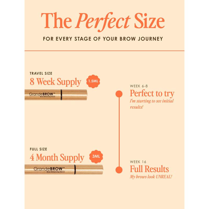 Meet our cult fave GrandeBROW Brow Enhancing Serum now available in a travel friendly size for envy worthy brows on the go! This revolutionary brow enhancing serum infused with a blend of vitamins, antioxidants, and amino acids to promote the appearance of fuller, bolder looking brows in just 6-8 weeks, with full improvement in 4 months. Perfect for sparse, thinning, over-plucked, tail-less brows. Dermatologist tested.