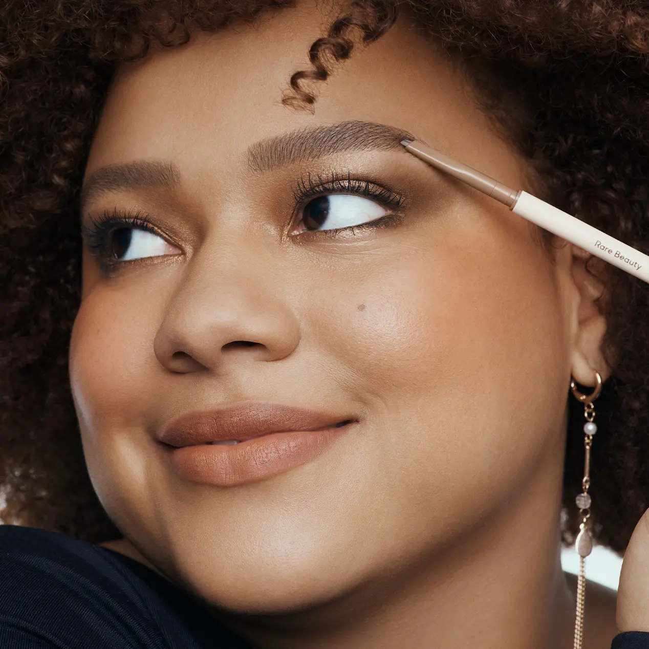 Twist pencil to reveal a small amount of product. Use the precision angled tip to fill in brows by drawing short, hair-like strokes in the direction of your natural hair growth.