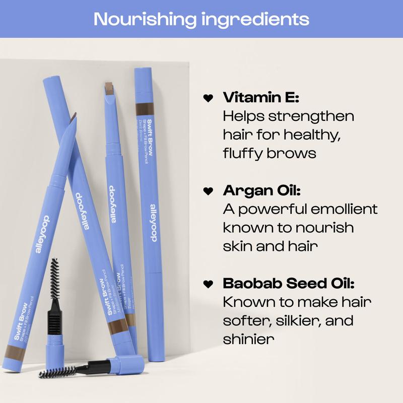 Swift Brow Shape + Fill Brow Pencil - All-in-one Brow Definition, Sharpener, and Spoolie - Water and Smudge Resistant - Vegan, Clean, and Nourishing Formula - 4 Universally Flattering Shades