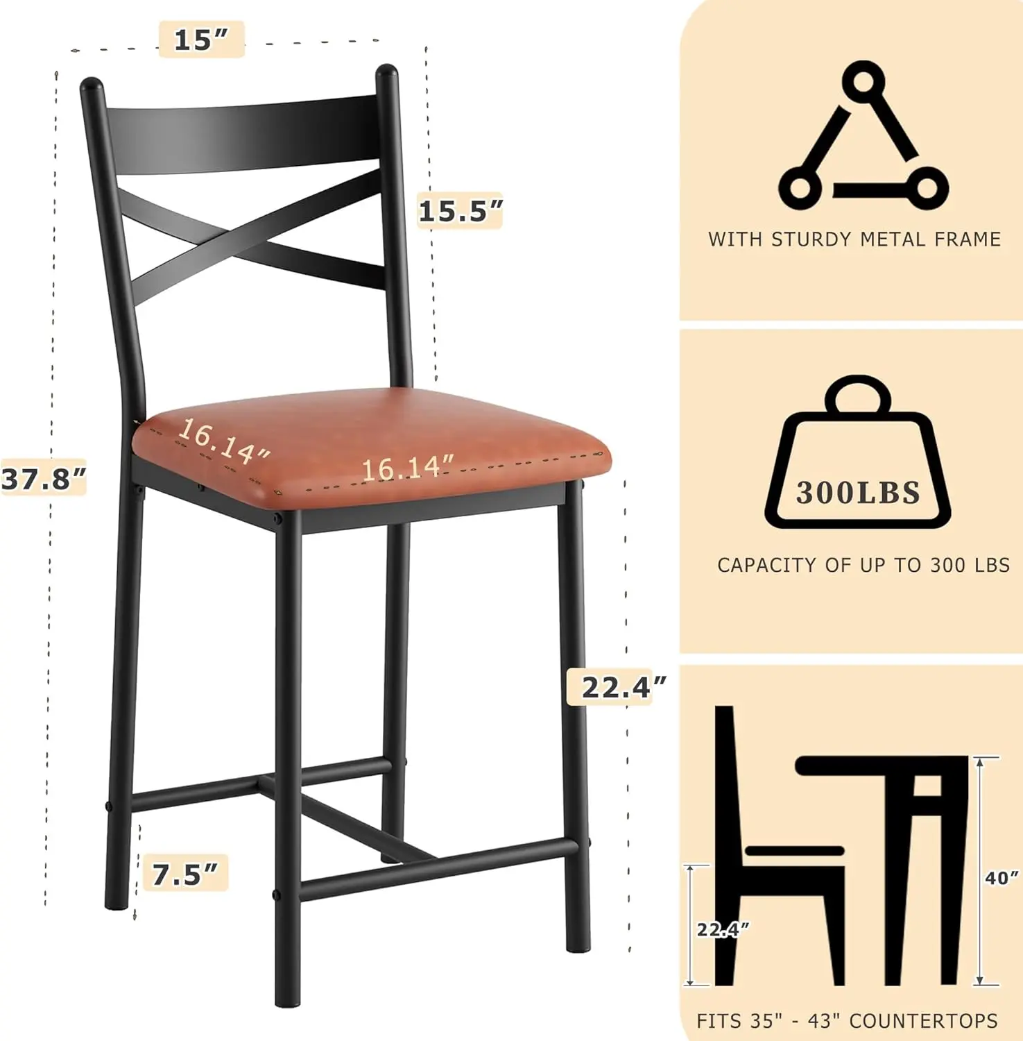 Sturdy and Durable Construction: Crafted with a robust metal frame, the bar stools can support a weight capacity of up to 300 lbs, ensuring long-lasting durability and making them an ideal choice for your kitchen island, dining room, or any counter space