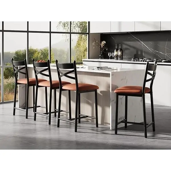 Stylish X Design: The eye-catching X back design of these bar chairs enhances their aesthetic appeal and adds a touch of modern elegance to any space, making them stylish stools that complement your decor