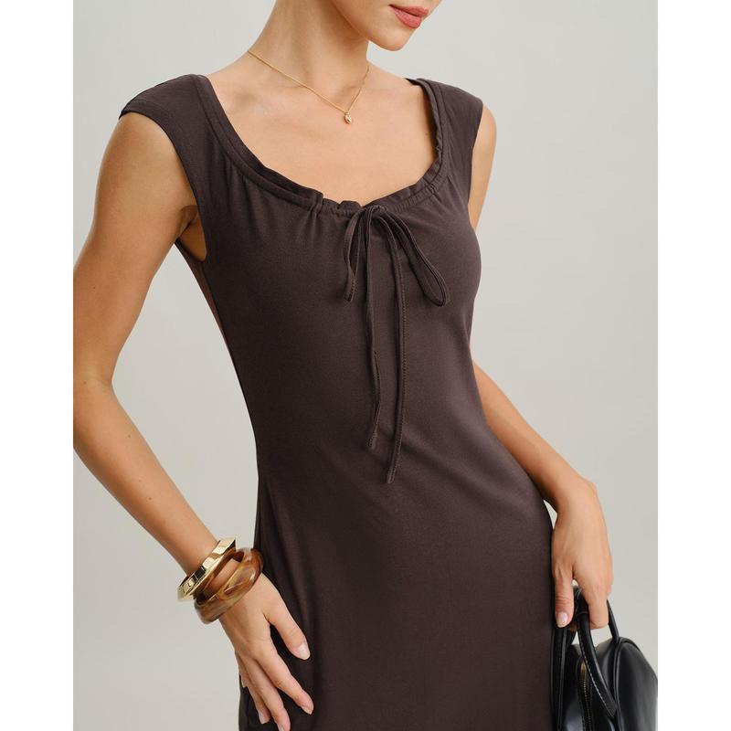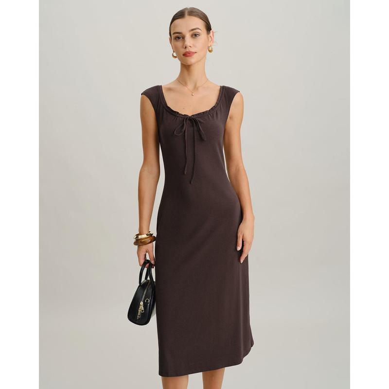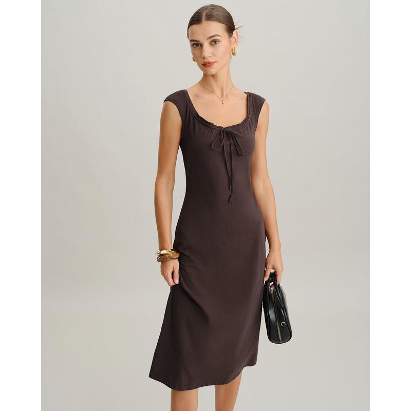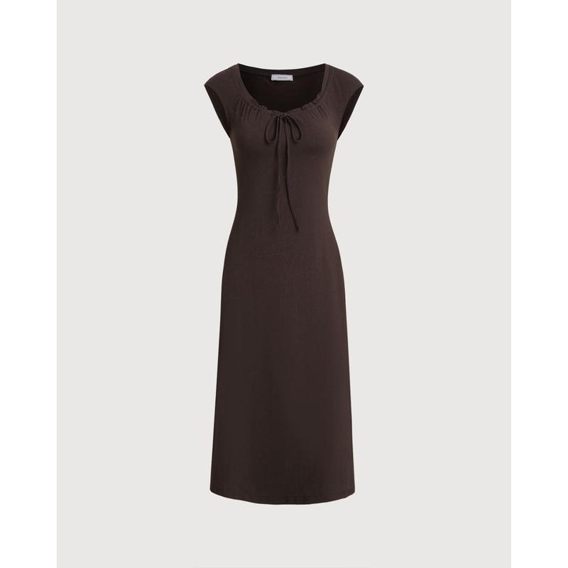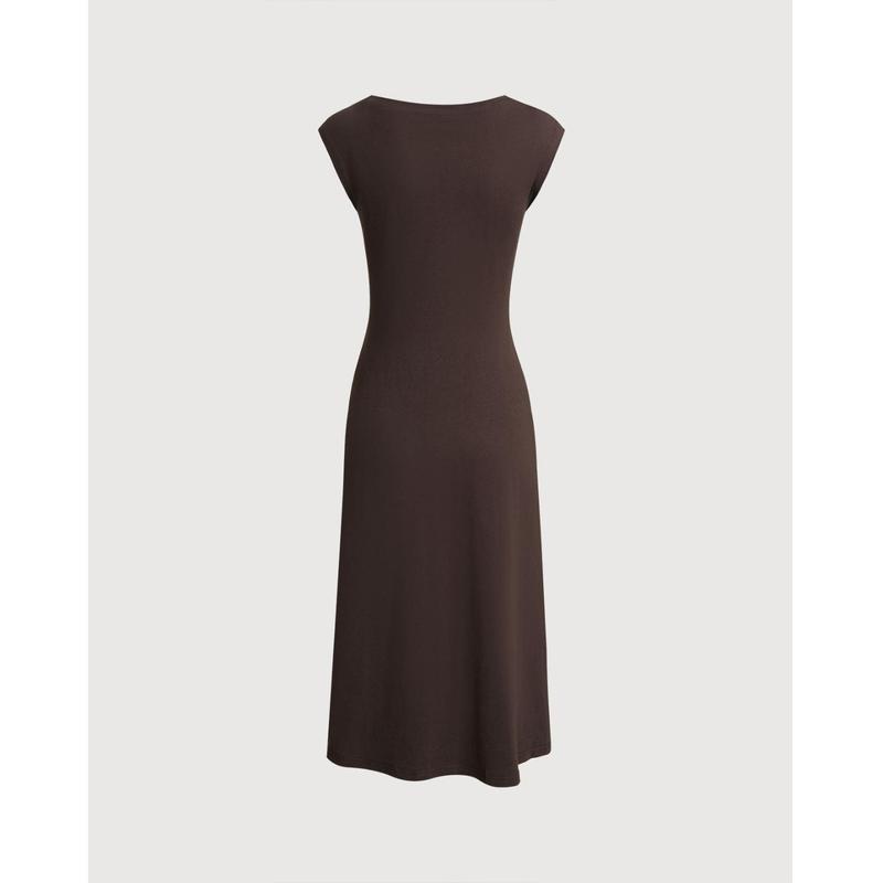 5. Brown Boat Neck Cap Sleeve Midi Dress