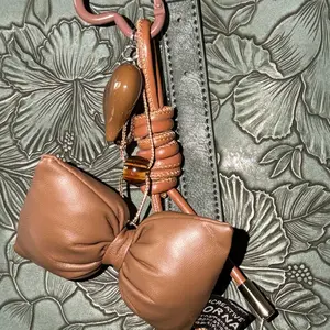Brown Miu Series Bag Charm Textured Leather Stylish High End Handmade Autumn Winter Brown Bag Pendant with Bow and Heart Accents