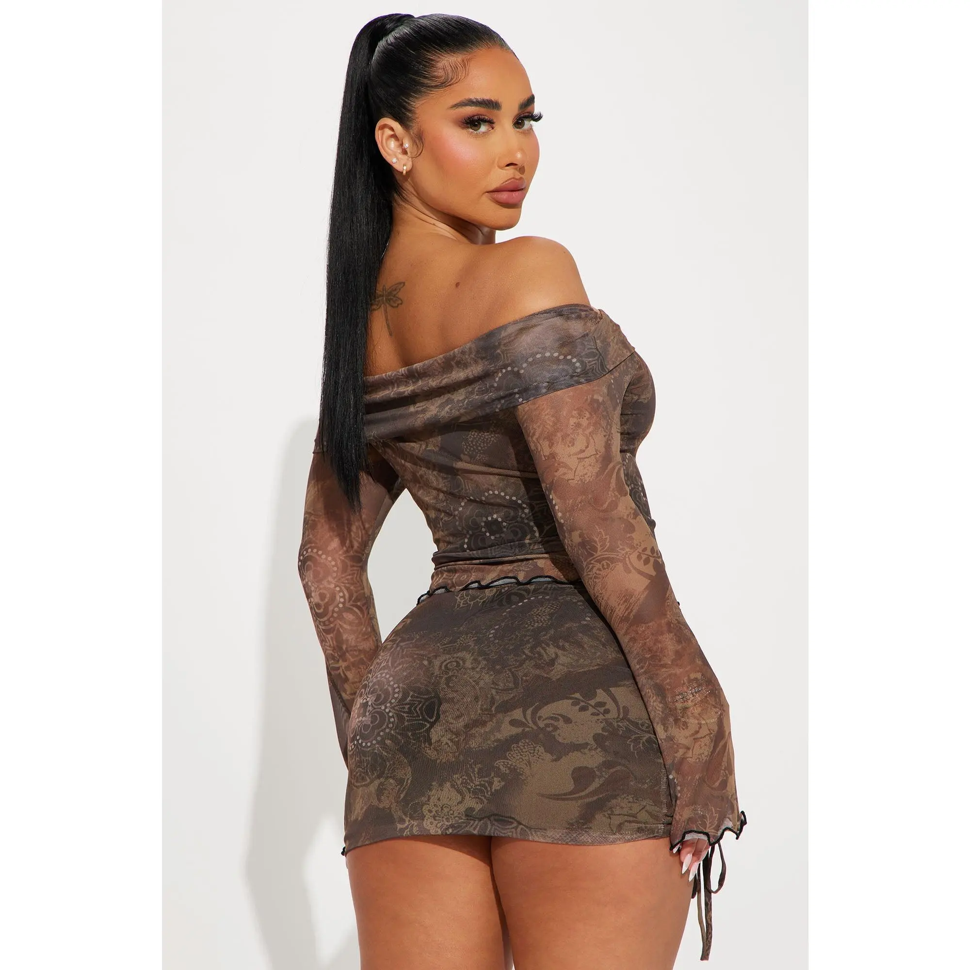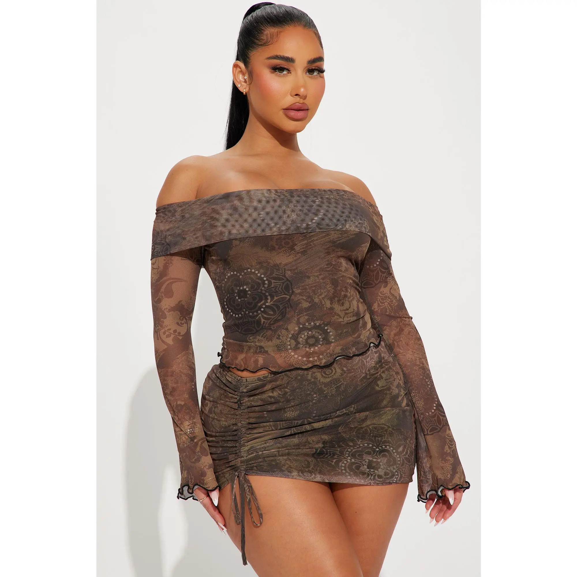 Fashionnova two piece skirt set - . Luna Mesh Skirt Set - Brown #tiktokshopcreatorpicks #TikTokShopFashion #twopieceset #fashionnova #cuteoutfits