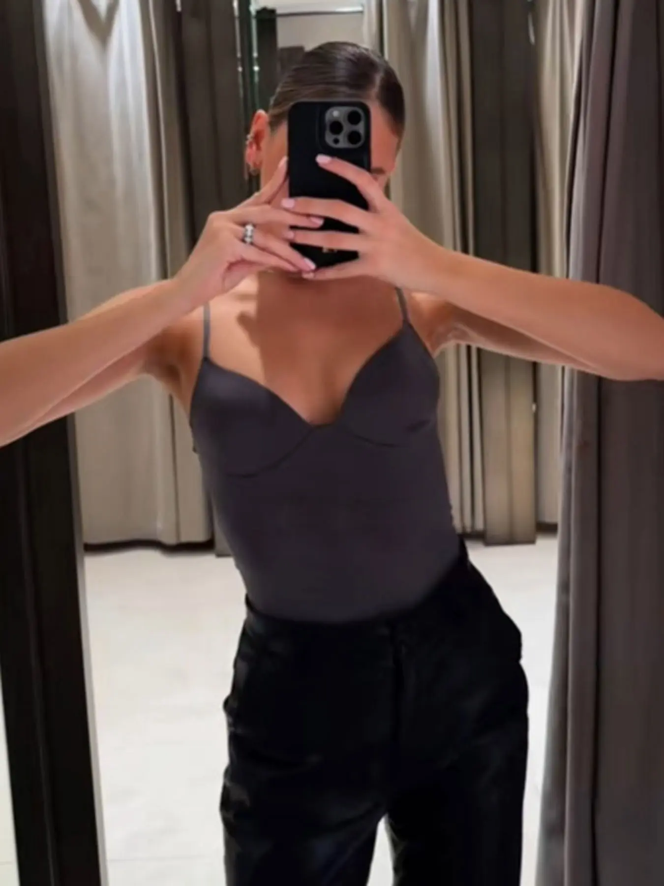 Sleek & effortless! 🖤 This black fitted cami is *the* versatile staple—layer under blazers or wear solo with jeans for minimalist allure. #CamiStyle #MinimalistChic #WardrobeHero #QuietLuxury #CapsuleWardrobe #OutfitRepeater