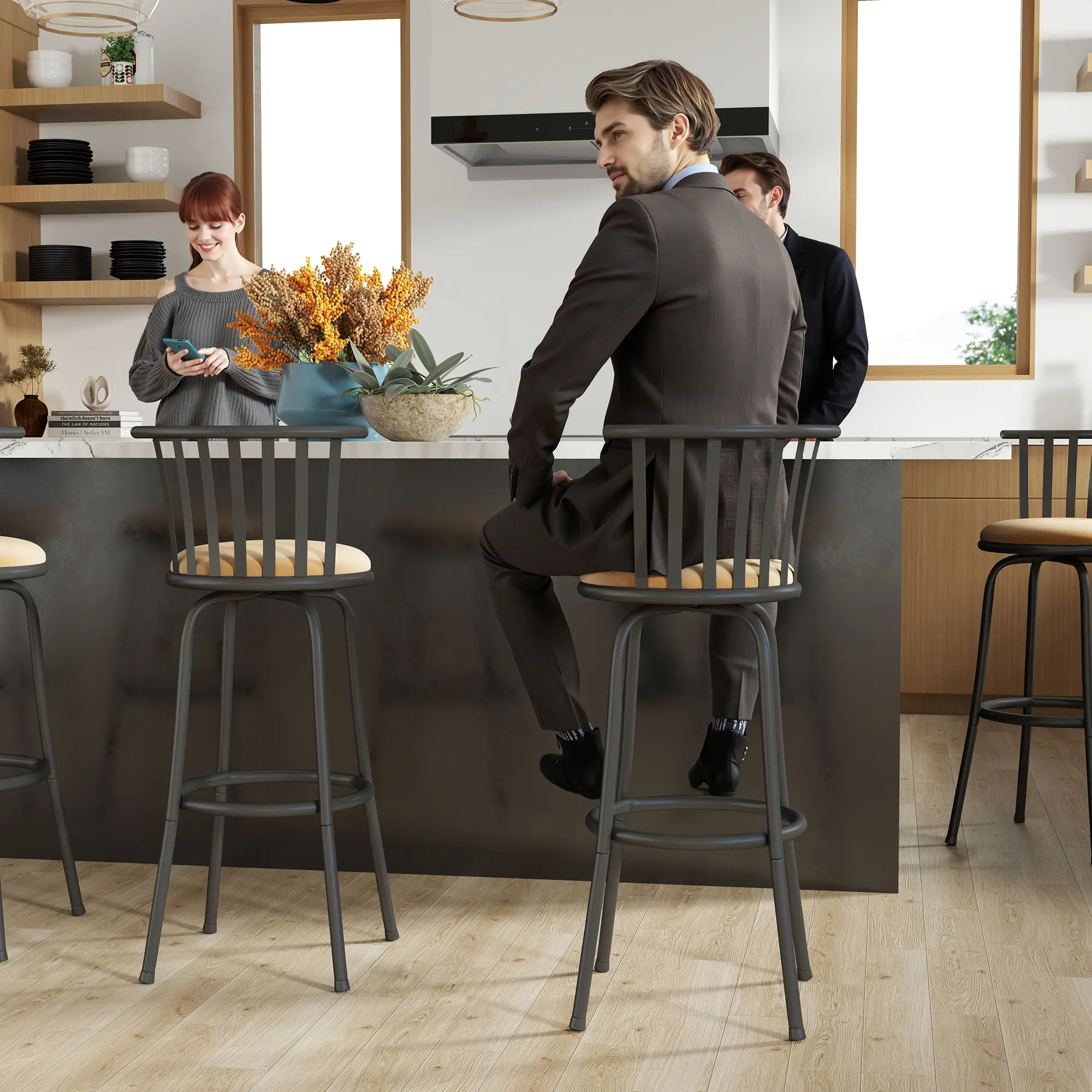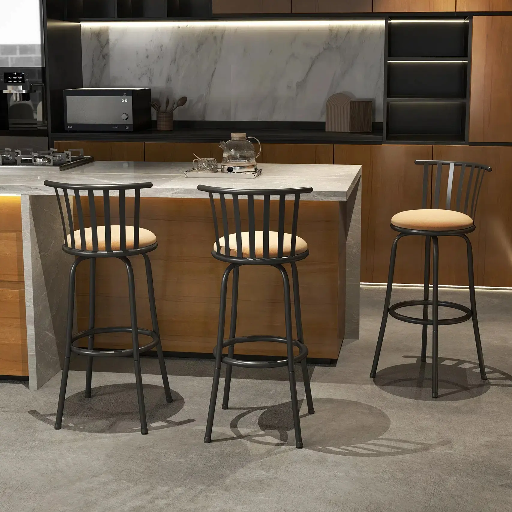 These were the perfect, inexpensive bar stools I came across. Instructions were clear and it didn’t take long to set up. Love how soft and sturdy the cushions were! 10/10 definitely recommend!