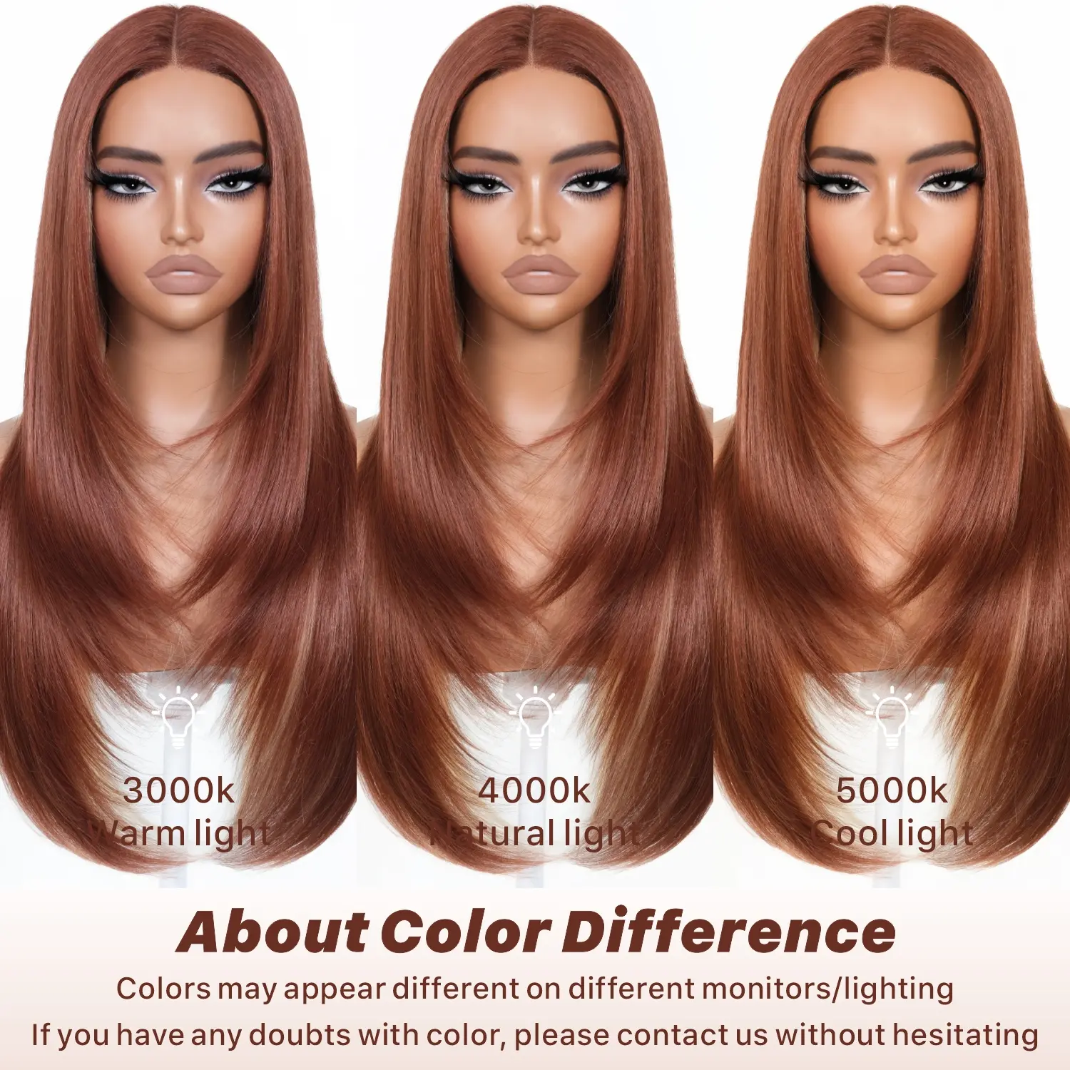 Ambient light, viewing angle, screen resolution, color recognition, personal expectations... Especially the light! The same hair color will show different colors in different light, warm light, cold light, and even sunshine at different times