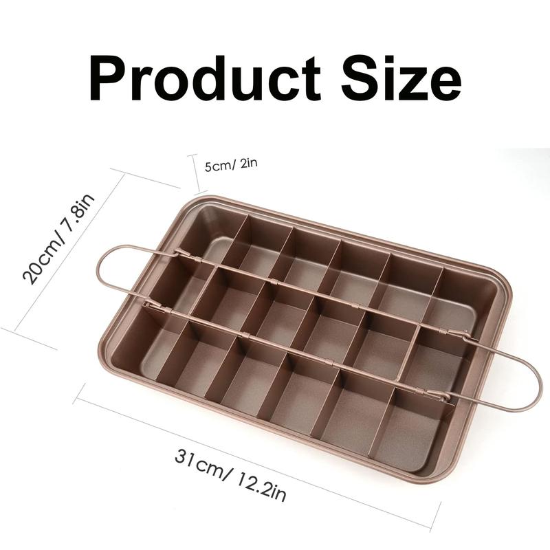Β·3.PERFECT PRECUT DIVIDER DESIGN: This precut brownie pan can make 18 perfectly sliced brownies all at once; creates flawless and uniformly sized brownies. So you don't need to cut every pieces with a knife.