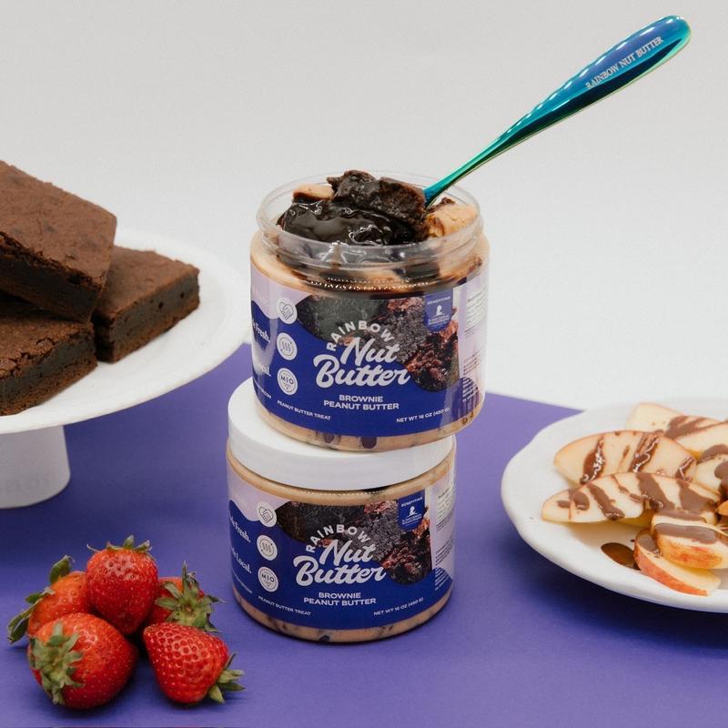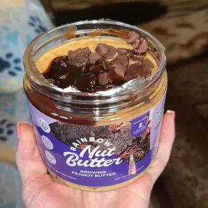 Brownie, chocolate chips & syrup in peanut butter, Oh it's just what the Dr ordered. I'm addicted to Rainbow Nut Butter .. This is delicious 10/10 Don't miss out 😋