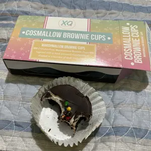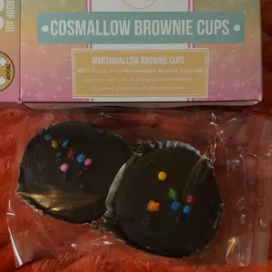 Cosmallow Brownies are fudgy soft brownie cups with chocolate ganache and vanilla marshmallow. Topped with rainbow chips, these brownie babes are our modern marshmallow twist on a classic chocolate treat. Two-packs make these perfect to share or snack all on your own!
