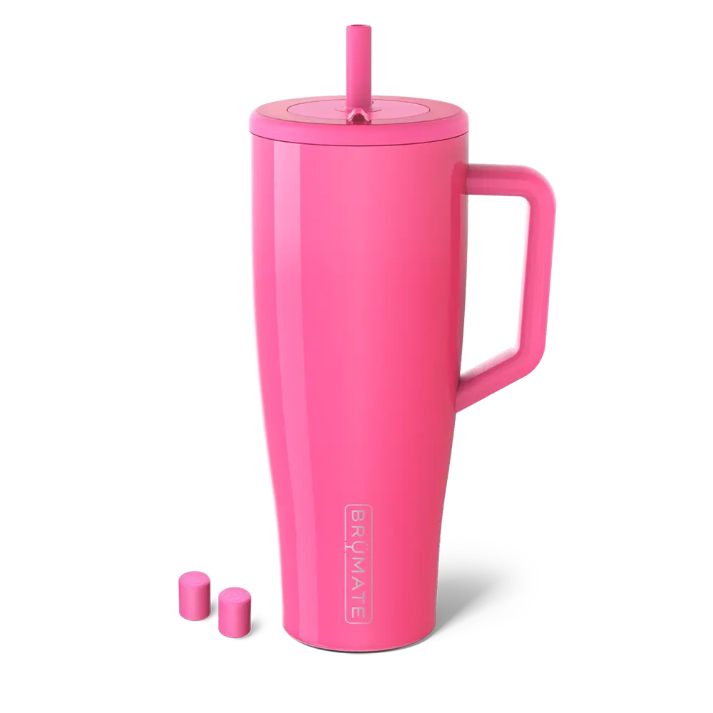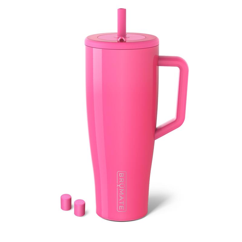 Love the cup and the color but only had a few weeks and it’s chipped already. In the White cup by Brumate it is silver around the top, not sure if that helps keep it from chipping. The yeti is 32 oz and the original Brumate is also 32 oz. The pink is 40oz.