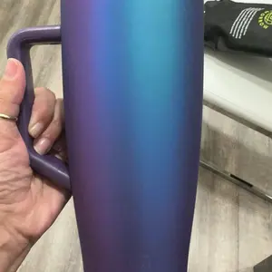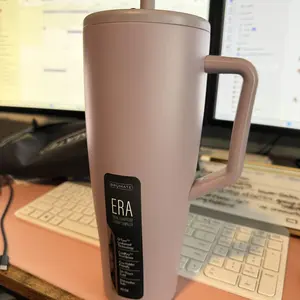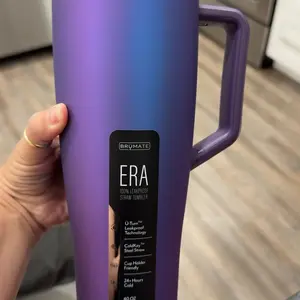 this cup is amazingggg, it has such a pretty color just like the picture, i love the straw covers so much they match perfectly and the bottom has tht silcone padding so it isnt straight metal on the table top and the leak proof thing is amazing as well and i like tht there is a metal straw on the bottom and tht silcone type on top so its softer still. Overall this cup is amazing and the handle has a soft type of material on the inside of the handle so its comfortable too in tht aspect