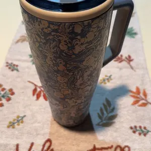 Absolutely LOVE this cup! Love that when I drop something running out of my house & bend over it doesn’t pour out all over me! Love that there’s a magnetic cap so 1. I don’t loose it and 2. Keeps my straw clean! Love that I can throw it in my bag. The soft grip! Nonskid bottom. The pattern! 😍🫶