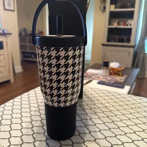 Love this Houndstooth design, it’s a really crisp and clean design. For me it’s great for a cooler day. I have the convenience of having no leaks and looking great.