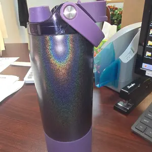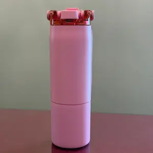 I use this one frequently for work to drink water and just for travel. It fits in my cup holder in my car too. I love the color and style of this cup. The glitter is subtle but just enough in sunlight. I also love how all the parts of the top easy to clean. Recommend this style of cup and love the carrying strap on it too.