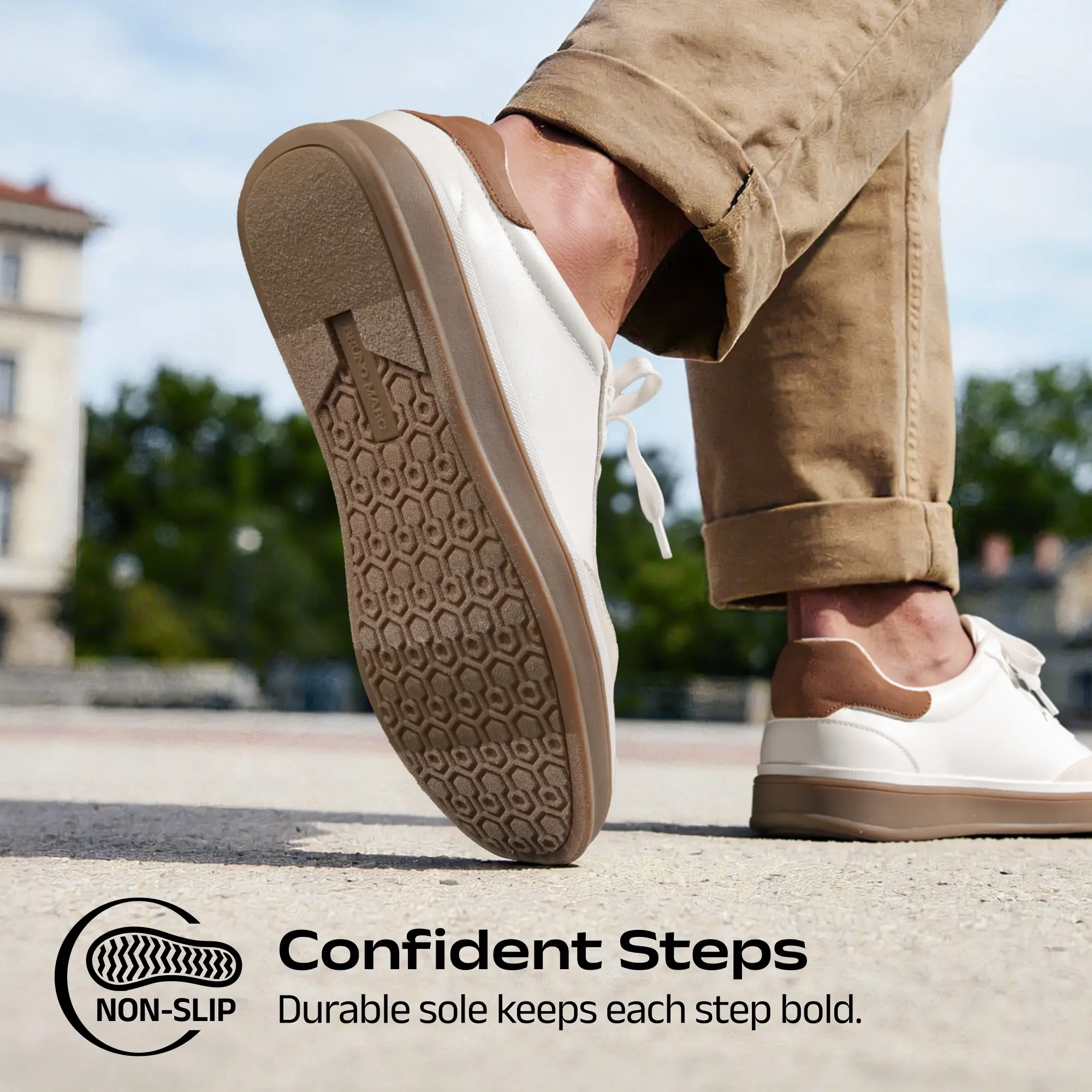 The Bruno Marc white sneakers were delivered today. They sent me used shoes. Literally had mud on the bottom of the shoes. Really disappointing. I threw them away, not worth my time to return. Had them for less than 30 minutes.