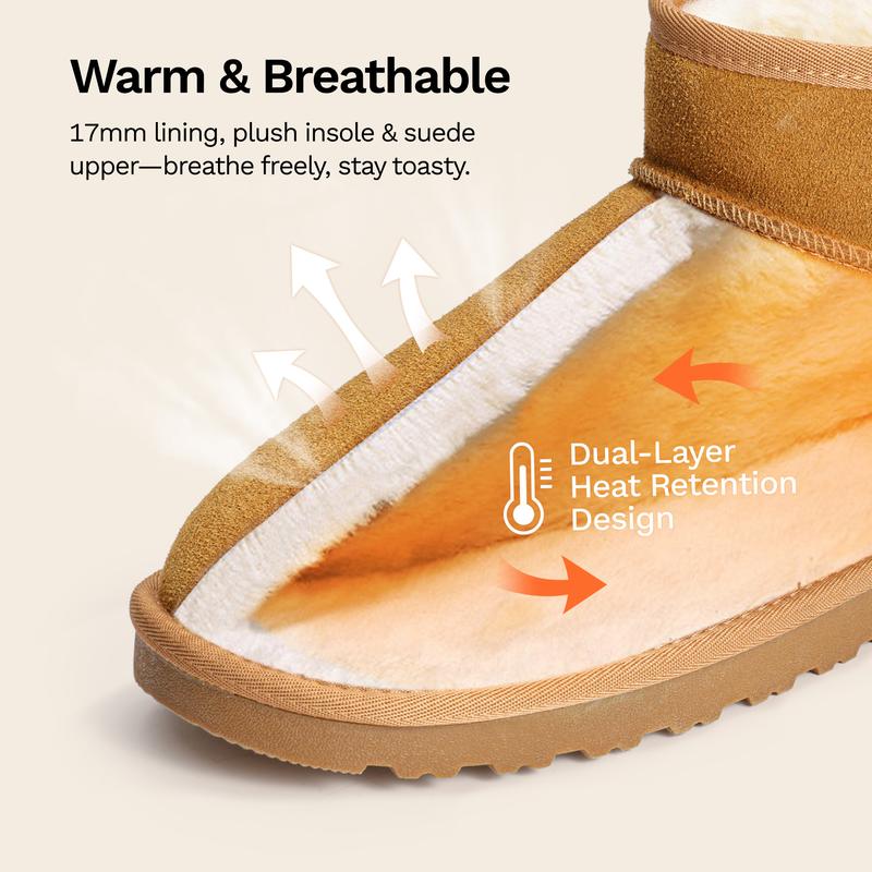 ·Warm & Dry: The 17mm plush lining and faux fur-covered EVA insole give these snow boots a velvety feel while preventing moisture buildup for dry comfort.
