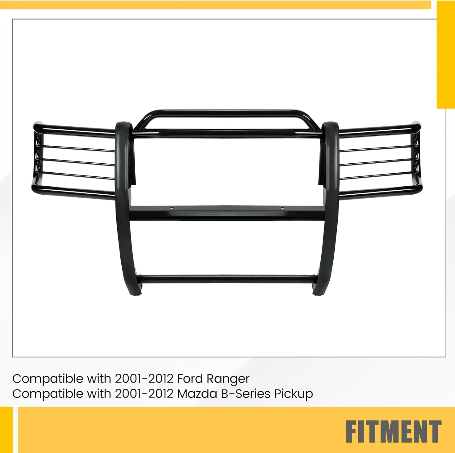 ·FITMENT- The Brush Guard compatible with 2001 2002 2003 2004 2005 2006 2007 2008 2009 2010 2011 2012 Ford Ranger; Compatible with 2001 2002 2003 2004 2005 2006 2007 2008 2009 2010 2011 2012 Mazda B-Series Pickup