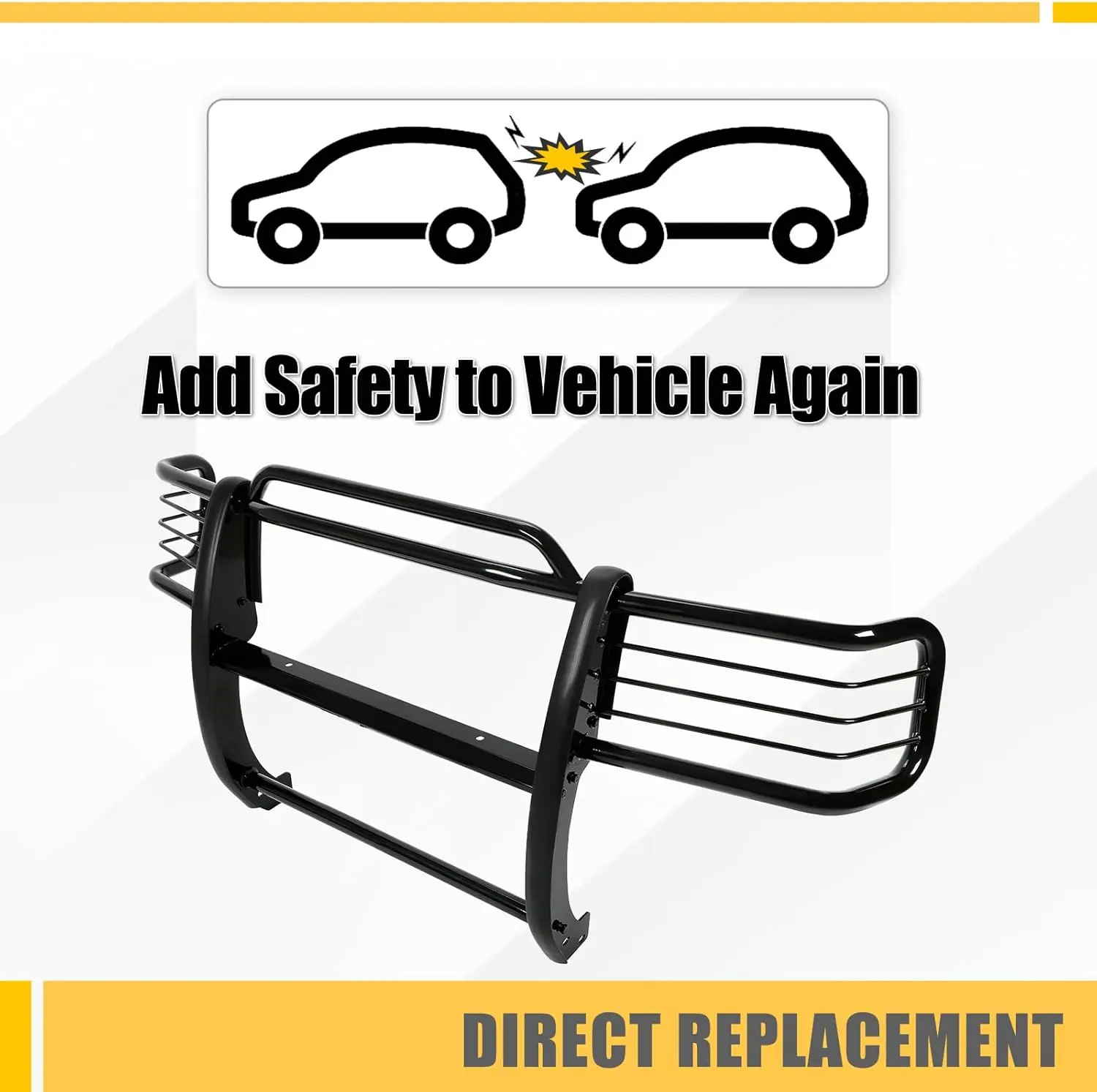 ·EXCELLENT PROTECTION- The black coating improves the appearance of the vehicle. The brush guard can not only protect the grille of the vehicle, but also protect the radiator from the impact of flying rocks and branches. It can effectively resist the impact and provide safety