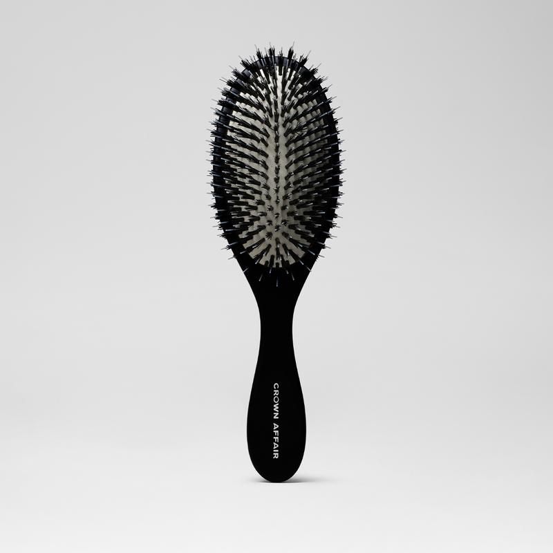 Boar and nylon bristle brush for healthy scalp and strands.