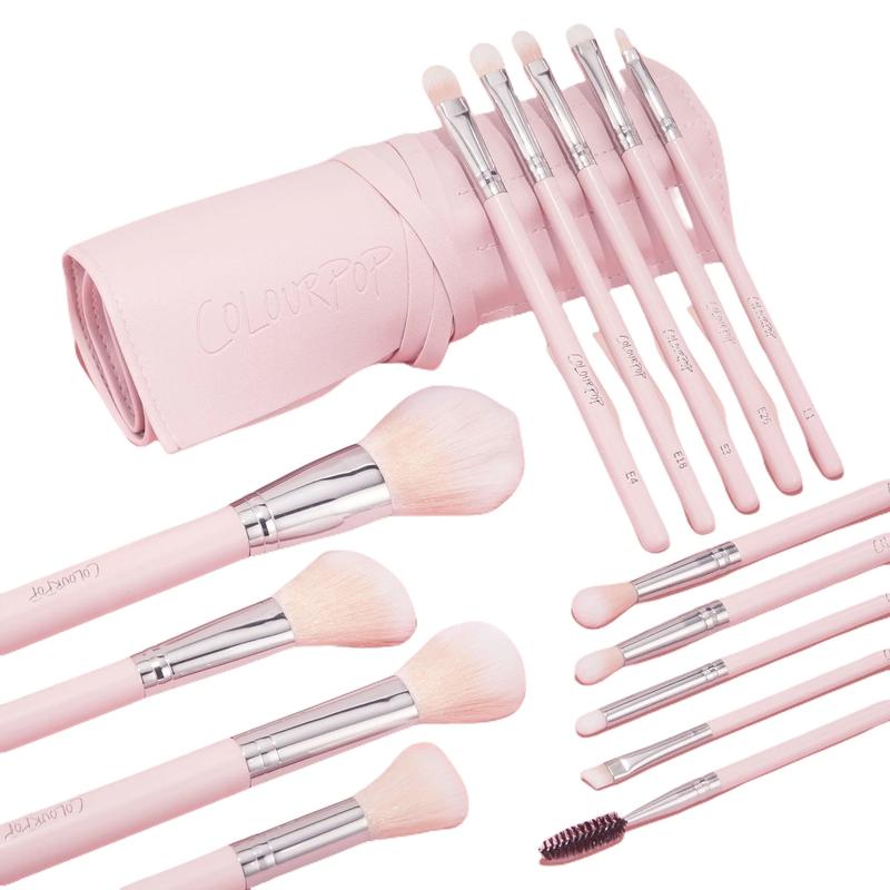 Introducing the ColourPop® Smoke 'N Roses Brush Roll, a perfect addition to any makeup collection! Designed for both beginners and professionals, this sleek roll-up set makes it easy to store and carry your brushes, whether you're at home or on the go.