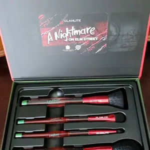 This set is to Die for Literally!..Great soft brushes, Great quality as always & the spooky blood Lava effect in brushes is so AWESOME..I almost do not want to use them.The box it came in was also Magnetic, Reusable and Mimicked the old Freddy/Elm Street VHC Tape.